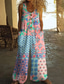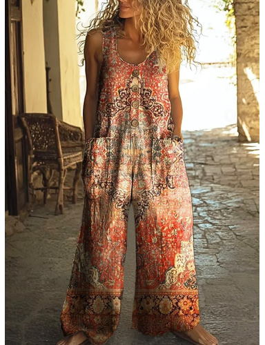 Damen Overall Aktiv Leinenartig Floral Ärmellos Weite Beine Rundhals Patchwork Alltag Urlaub Lockere Passform Blau Rot Orange Sommer