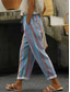 Frauen Leinenähnliche Slacks Lässige Volle Länge Knöchellang Natürlich Gestreift Geometrisches Taschen Druck Elastisches Zugband Design Bequem Komfortabel Bequem Unelastisch Urlaub Formal Straße Blau