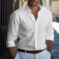 Herren Hemd leinenhemd Feste Farbe Casual Täglich Weiß Rosa Marineblau Blau Langarm Kragen Frühling Sommer Bekleidung Button-Down