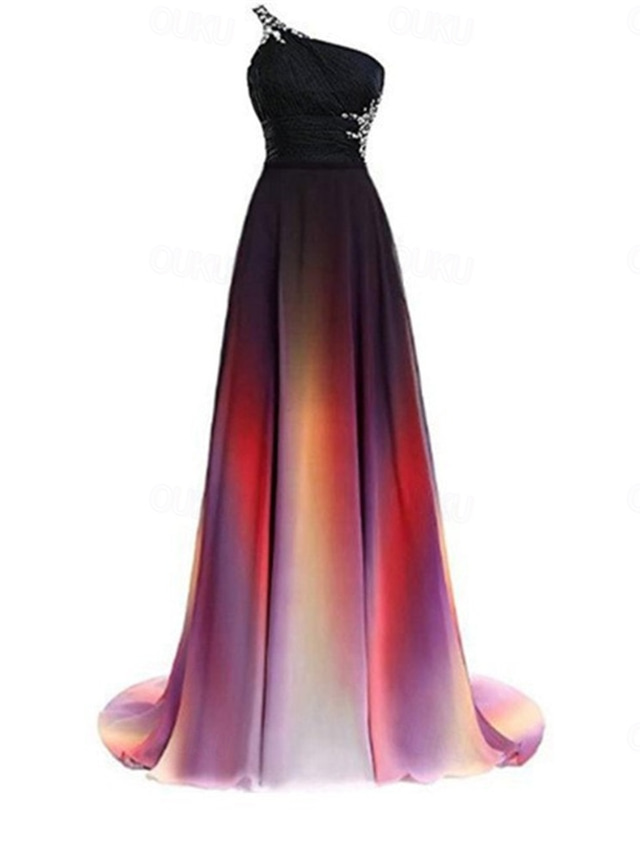 A-Linie Abendkleid Elegantes Kleid Formale Hochzeit Bodenlang Ärmellos Ein Schulter Chiffon mit Falten 2026 - US $115.99 –P4