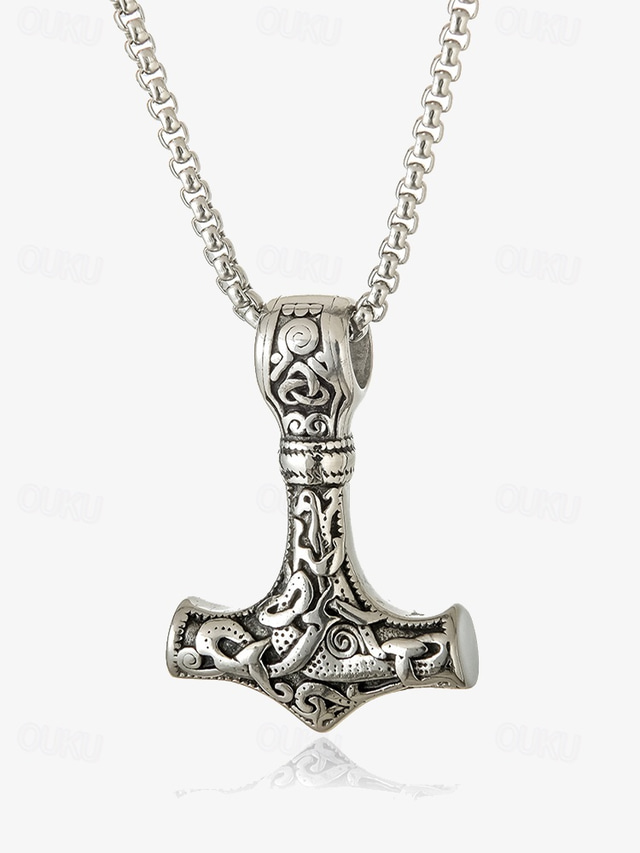 Material: Titanstahl, Design: Nordischer Wikinger-Stil, Stil: Punk, Vintage, Mode, Schmucktyp: Anhänger Halskette, Halskette, Form: Hammer, Versandgewicht (kg): 0.2, Paket Abmessungen (cm): 12.0*1.0*3.0, Kotierung: 08/09/2024,