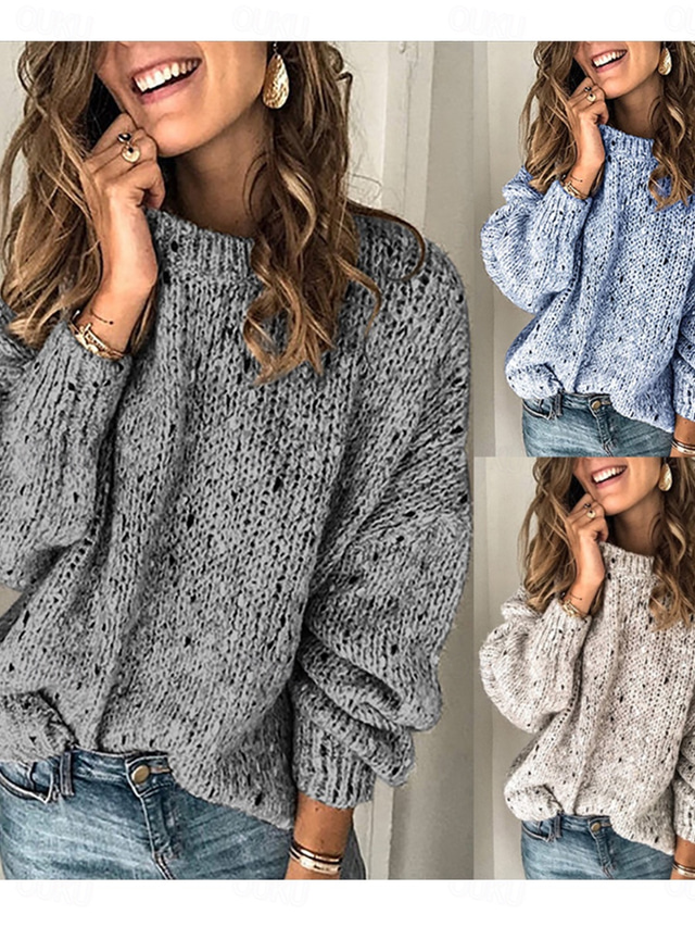 Damen Pullover Lässig Weich Einfarbig Gerippt Rundhalsausschnitt Gestrickt Langarm Normale Oberteile Stricken Outdoor Täglich Wochenende Blau Hellgrau Herbst Winter