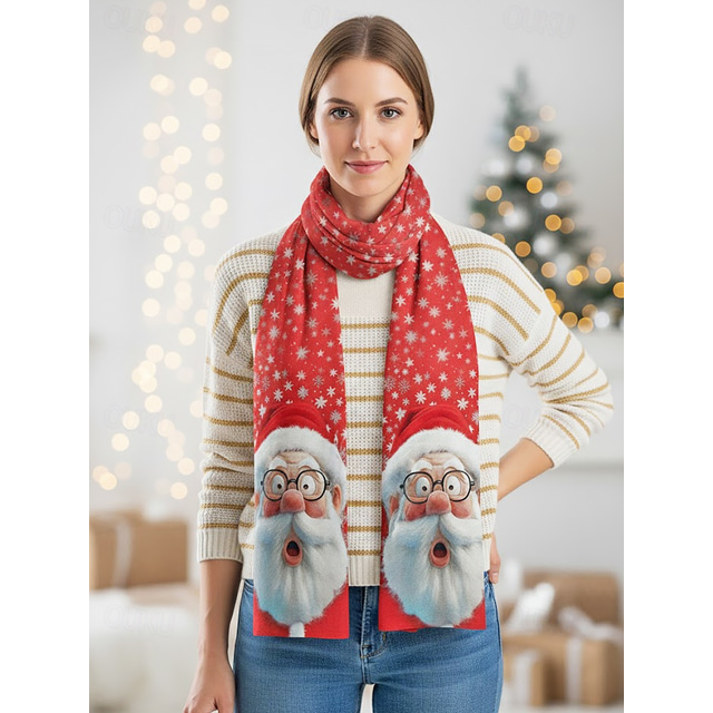 Geschlecht: Damen, Kategorie: Schal, Stoff: Polyester, Stil: Freizeit, Weihnachten, Muster: Weihnachtsbaum, Weihnachtsmuster,