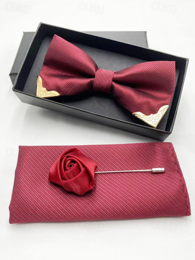 Burgunderfarbenes Herren-Fliegenset mit Goldspitze, Einstecktuch und rosa Anstecknadel – elegante Accessoires für Hochzeiten, Partys und formelle Anlässe 2026 - US $9.99 –P1