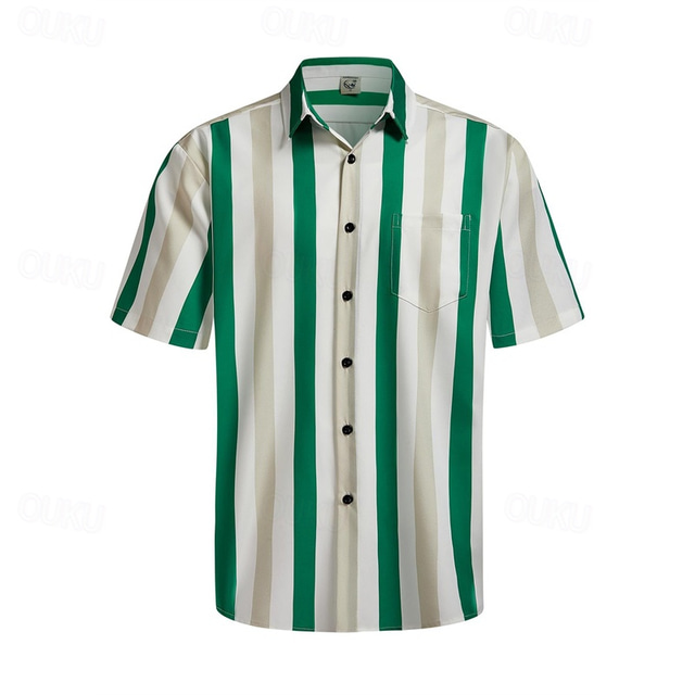 Herren Hemd Sommerhemd Freizeithemd Strandhemd Knopfhemd Hellgrün Blau Grün Grau Kurzarm Streifen Revers Urlaub Hawaiianisch Bekleidung Polyester Mode Lässig Bequem 2026 - US $24.99 –P3