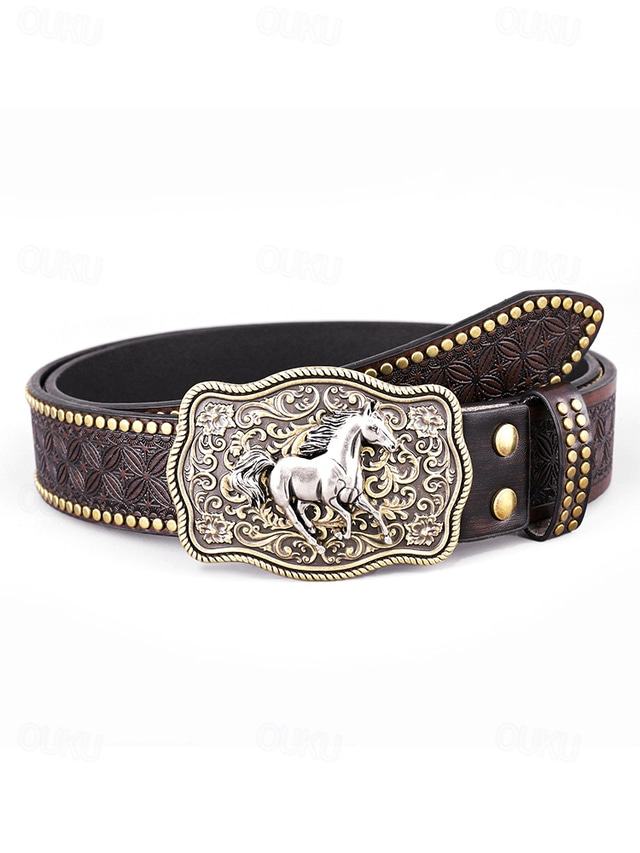 Herren-Ledergürtel im Westernstil mit Adlerschnalle – Vintage-Prägungsdesign mit Nieten, ideal für Freizeit- und Country-Kleidung 2026 - US $16.99 –P1