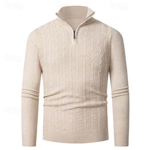 Herren Pullover Pullover mit Viertelreißverschluss Strickpullover Zopfmuster Stricken Normale Oberteile Gestrickt Einfach Viertelreißverschluss Mode Lässig Urlaub Alltagskleidung Bekleidung Herbst