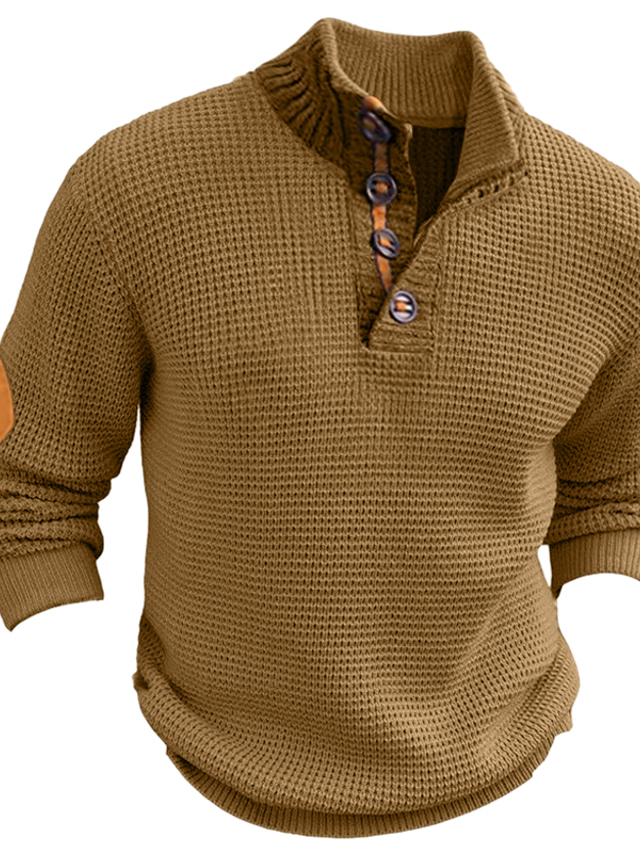 Herren Pullover Pullover mit Zopfmuster Patch-Pullover Gerippt Stricken Standard Strick Glatt Ständer Vintage warm halten Freizeitskleidung Ausgehen Bekleidung Herbst Winter Schwarz Blau M L XL