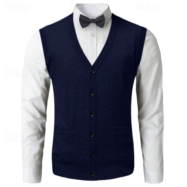 Stoff: Polyester, Geschlecht: Herren, Pullover Typ: Pullunder, Kleid Pullover, Anlass: Alltagskleidung, Design: Gestrickt, Stil: Stilvoll, Vintage-Stil, Passform: Normale Passform, Ausschnitt: V Ausschnitt, Ärmellänge: Ärmellos, Elastizität: Mikroelastisch, Pflegetipps: Waschbar, Nass und trocken reinigen, Muster: Einfarbig, Saison: Winter, Herbst, Titelseite: FF, Produktionsmodus: Fremdbeschaffung,
