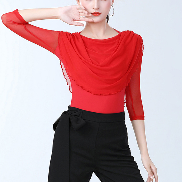 Latein-Tanz Sportkleidung oben Pure Farbe Farbaufsatz Damen Ausbildung Leistung 3/4 Ärmel Hoch Baumwollmischung 2026 - US $34.99 –P3