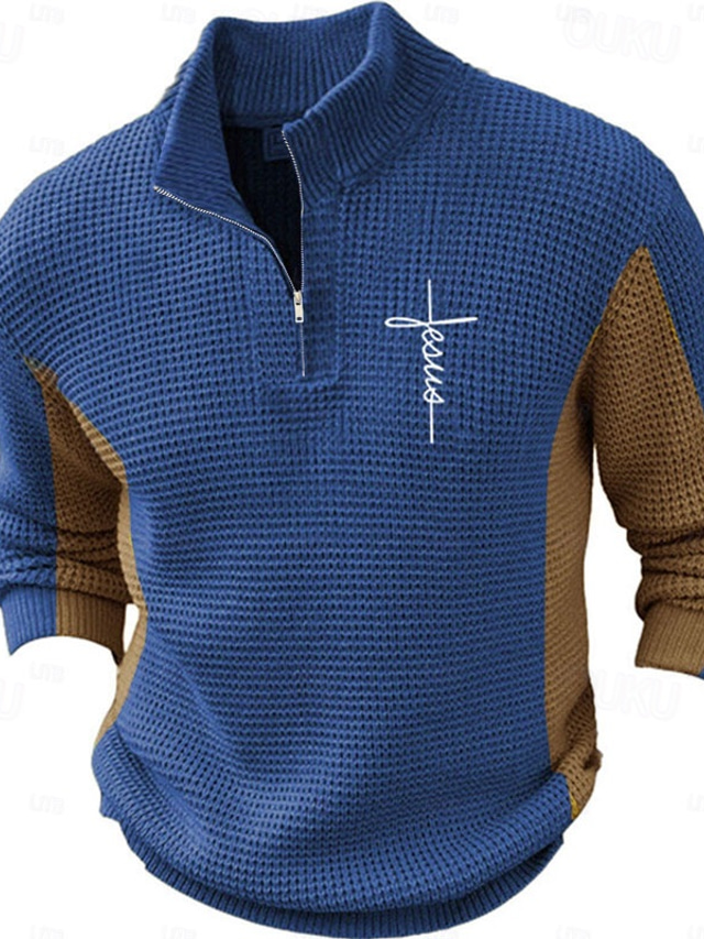Herren Vertrauen Pullover Zip Pullover Reißverschluss Polo-Pullover Ständer Retro Vintage Party-Abendgarderobe Täglich Urlaub Bestickt Zip Gestrickt Langarm Herbst Winter Himmelblau Braun Grün 2026 - US $39.99 –P1