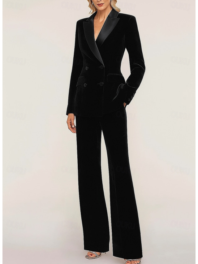 Damen 2-teilige Anzüge Formell Hochzeitsgast Samt Elegant Einfach Langarm Bodenlang Peak Revers Doppelreihig 2026 - US $178.99 –P1