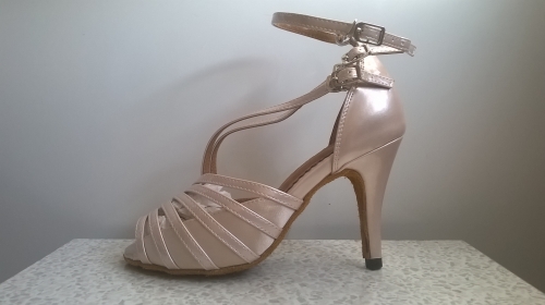 Damenschuhe mit Riemchen aus Satin fuer lateinamerikanische Taenze und weicher Wildledersohle - Gesellschaftstanzschuhe