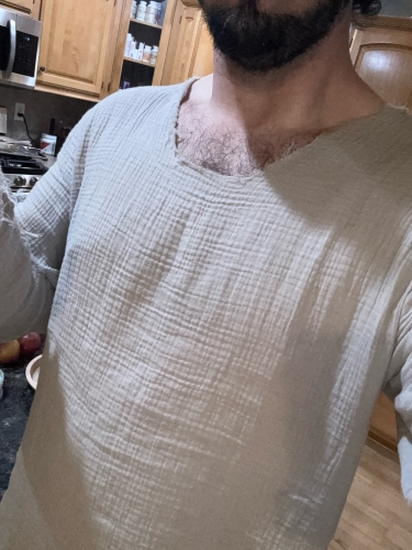 Really neat super light weight muslin material for summer. Seams / Hems are not sewn but left frayed. Love it! Really neat super light weight muslin material for summer. Seams / Hems are not sewn but left frayed. Love it!