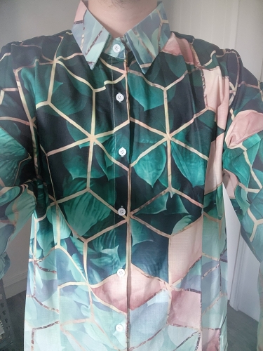 Was für ein Muster. Tolles Outfit für den Sommer und Partys. Ein Hemd, dass zu verschieden farbigen Hosen getragen werden kann Was für ein Muster. Tolles Outfit für den Sommer und Partys. Ein Hemd, dass zu verschieden farbigen Hosen getragen werden kann