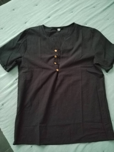 This is not a t-shirt, does not stretch. Feels very relaxing.