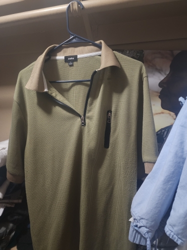 The colour and quality of this polo shirt is wonderful. The texture of the waffle effect in the material is very soft and comfortable. true to size. The colour and quality of this polo shirt is wonderful. The texture of the waffle effect in the material is very soft and comfortable. true to size.