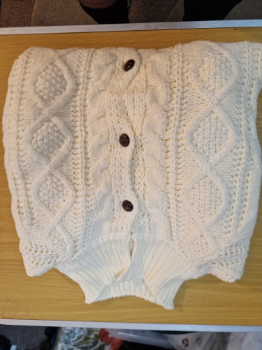 beautiful cardigan fits well just wish the patter was all way round not just the front beautiful cardigan fits well just wish the patter was all way round not just the front