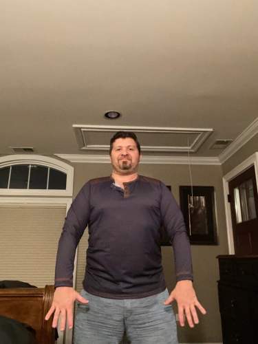 Shirt is very stretchy, but fits snuggly. If you have a well-defined, upper body go with your size and it’ll look great. If you’re carrying a few extra pounds, you might want to size up one. Shirt is very stretchy, but fits snuggly. If you have a well-defined, upper body go with your size and it’ll look great. If you’re carrying a few extra pounds, you might want to size up one.