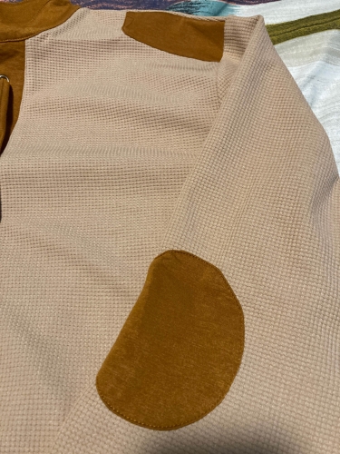Imitacje łat na rękawach źle naszyte - nie na łokciach, wygląda to trochę dziwnie. Reszta ok. Imitacje łat na rękawach źle naszyte - nie na łokciach, wygląda to trochę dziwnie. Reszta ok.