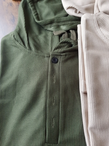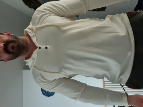 fabric feels nice. it dries fast after being washed too. arms, belly, shoulder, chest area arent tight. its a nice comfy loose ish fit. i will probably order a few more in different colours!