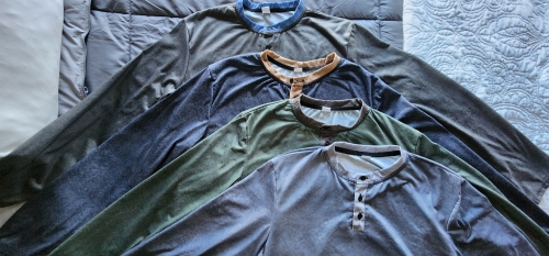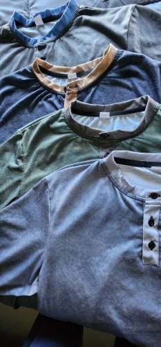Love these shirts so much that this is the second set that I purchased. Medium, true to size. Great fit, nice colors. Love these shirts so much that this is the second set that I purchased. Medium, true to size. Great fit, nice colors.