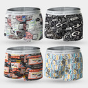 Herren 4 Packung Unterwäsche Kurze Boxershorts Unterwäsche Unterwäsche Boxer Bedruckt Nylon Antibakteriell Buchstabe Grafik-Drucke Mittlere Taillenlinie Cartoon+Schwarz Weiß+Motorrad+Blau Gelb