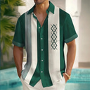 Herren Hemd Bowling-Shirt Knopfhemd Kurzarm Vintage Brautkleider schlicht Stamm Täglich Festtage Sommer Frühling Stehkragen Opa Kragen Bedruckt Grün Khaki Beige |