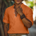 Herren Hemd Leinenhemd Sommerhemd Strandbekleidung Stehkragenhemd Knopfhemd Einfach Urlaub Kreuzfahrt Schwarz Weiß Blau Orange Kurzarm Stehkragen Sommer Bekleidung |