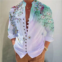 Herren Blumen Hemd Knopfhemd Langarm Mode Designer Lässig Urlaub Täglich Ausgehen Herbst Frühling & Sommer Stehkragen Druck Blau Purpur Grün Grau |