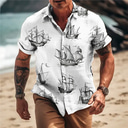 Herren Anker Vintage Kompass Hemd Knopfhemd Kurzarm Vintage Mode Designer Outdoor Lässig Sommer Frühling Umlegekragen Druck Schwarz Weiß Gelb Blau Grau |