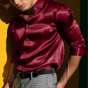 Herren Hemd Satinhemd Freizeithemd Knopfhemd Einfach Hochzeit Urlaub Schwarz Weiß Blau Rot Langarm Revers Frühling & Sommer Bekleidung |