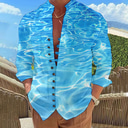 Herren Wellen Meereslandschaft Muster Hemd Sommer Hawaiihemd Alohahemd Langarm Hemd Stehkragen Mode Designer Lässig Outdoor Urlaub Straße Rote Königsblau Blau S M L |