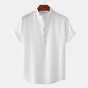 Herren leinenhemd Sommerhemd Strandbekleidung Knopfhemd Gestreift Urlaub Curise Weiß Blau Grün Khaki Kurzarm Kargen Frühling Sommer Bekleidung Grundlegend |