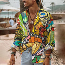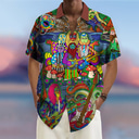 Herren Musik Hippie Hemd Sommer Hawaiihemd Knopfhemd Kurzarm Sport Mode Streetwear Lässig Outdoor Hawaiianisch Sommer Frühling Kubanisches Halsband Druck Blau Purpur Regenbogen |