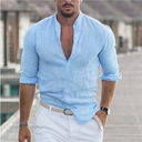 Herren Hemd Leinenhemd Sommerhemd Freizeithemd Knopfhemd Einfach Urlaub Kreuzfahrt Schwarz Weiß Rosa Blau Langarm Stehkragen Sommer Frühling & Herbst Bekleidung |