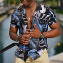 Herren Blätter Tropische Pflanzen Hemd Sommer Hawaiihemd Alohahemd Kurzarm Hemd Kubanisches Halsband Sport Mode Streetwear Lässig Outdoor Hawaiianisch Blau Schwarz Gelb S M L |
