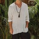 Herren leinenhemd Sommerhemd Strandbekleidung Lässiges Hemd Glatt Urlaub Curise Weiß Blau Braun Khaki Langarm V Ausschnitt Frühling Sommer Bekleidung |
