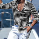 Herren Hemd Sommerhemd Strandhemd Gestreift Hawaiianisch Festtage Schwarz Blau Grün Langarm Kargen Frühling Sommer Bekleidung Bedruckt |