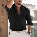 Herren Leinenhemd Popover-Hemd Freizeithemd Strandhemd Stehkragenhemd Einfach Strand Urlaub Blau Schwarz Weiß Rosa Langarm Henley Frühling & Sommer Bekleidung |