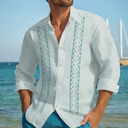 Herren leinenhemd Guayabera Hemd Sommerhemd Lässiges Hemd Strandhemd Gestreift Urlaub Hawaiianisch Weiß Blau Khaki Grau Langarm Kargen Frühling Sommer Bekleidung Bedruckt |
