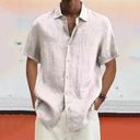 Herren leinenhemd Sommerhemd Strandbekleidung Knopfhemd Glatt Urlaub Curise Schwarz Weiß Blau Violett Kurzarm Umlegekragen Frühling & Herbst Bekleidung Button-Down |