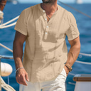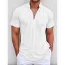 Herren Hemd Leinenhemd Popover-Hemd Sommerhemd Strandbekleidung Stehkragenhemd Einfach Urlaub Lässig Schwarz Weiß Rosa Grün Kurzarm Henley Sommer Bekleidung |