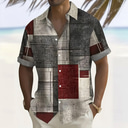 Herren Geometrisch Farbblock Patchwork Hemd Knopfhemd Kurzarm Modisch lässig Streetwear Urlaub Ferien Sommer Umlegekragen 3D-Druck Hemden mit Kragen Eine Tasche vorne Grau |