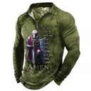 Herren Tempelritter Poloshirts mit Reißverschluss Golfshirt Langarm Polo-Shirts Hemden mit Kragen Vintage Lässig Urlaubskleidung Festivalkleidung Party-Outfits 3D-Druck Viertelreißverschluss-Poloshirt