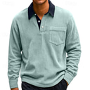 Herren Cordhemd Golfshirt Lässig Arbeit Revers Langarm Basic Modern Farbblock Knöpfe Frühling Herbst Normale Passform Blau Schwarz Weiß Rote Marineblau Orange Cordhemd