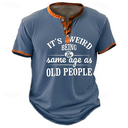 Männer Humorvolles Grafik Henley T-Shirt mit dem Slogan 'Es ist seltsam im gleichen Alter wie alte Menschen zu sein'