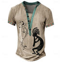 Herren Stammes Bandana-Print T Shirt Henley Hemd Kurzarm 3D-Druck Urlaub Tropisch Mode Urlaub Lässig Täglich Sommer Frühling Gelb Braun Khaki Henley Henley T-Shirt