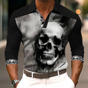 Tag der Toten Herren Schädel Poloshirts Golfshirt Langarm Polo-Shirts Hemden mit Kragen Horror Streetwear Festivalkleidung Party-Outfits 3D-Druck Knöpfe Herbst Winter Schwarz