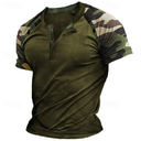Herren Henley Hemd T-Shirt Kurzarm Farbblock Mode Designer Bequem Knöpfe Henley Outdoor Lässig Täglich Sommer Armee-Grün Blau Grau Henley T-Shirt |